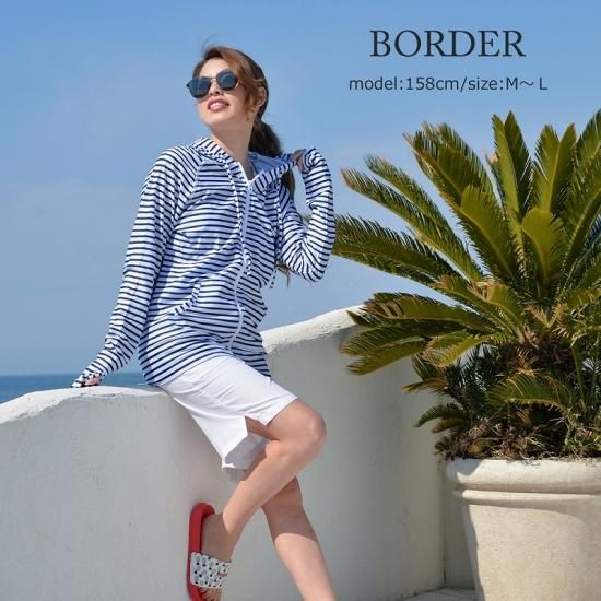 ラッシュガード 総柄 パーカー ボーダー レディース 長袖 おしゃれ 水着 体型カバー 大きいサイズ UVカット フード スポーツ アウトドア プール 海 送料無料