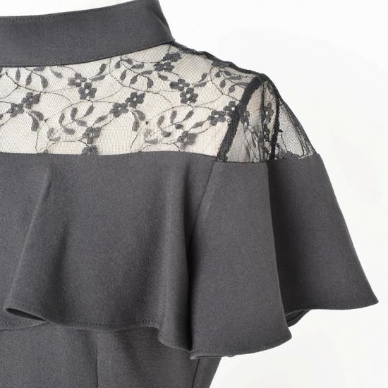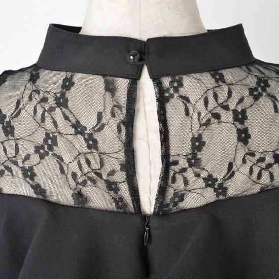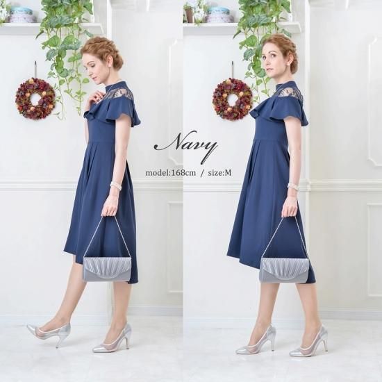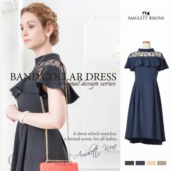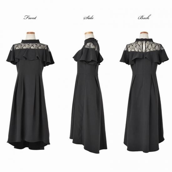 バンドカラーテールワンピドレス レディース ワンピース アシンメトリー レース袖 半袖 女性 結婚式 ウエディング パーティ 二次会 Aライン シンプル フォーマル 可愛い おしゃれ 送料無料
