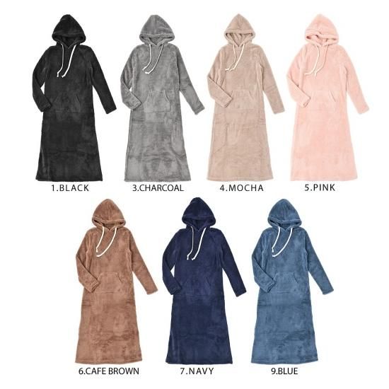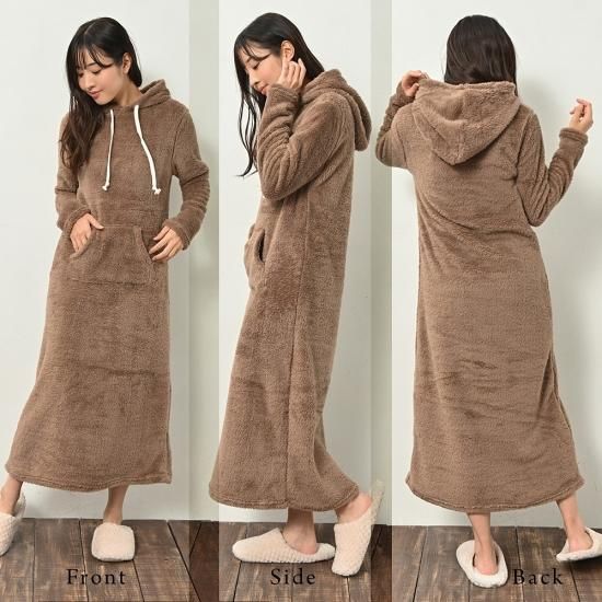 シープボア マキシワンピース レディース ワンピ マキシ丈 長袖 秋服 冬服 大人 可愛い 秋冬 パーカー ルームウェア パジャマ 部屋着 フード シンプル 暖かい モコモコ おしゃれ 送料無料