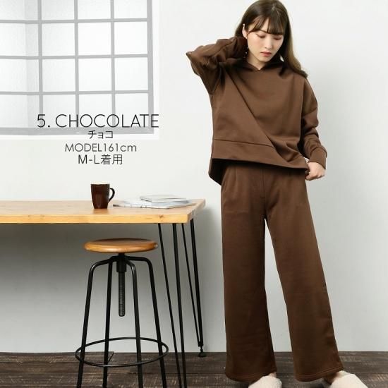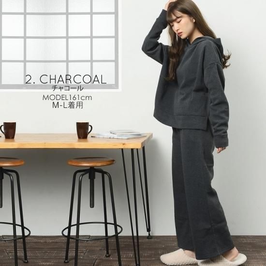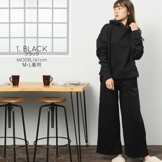裏起毛 ワイドパンツ パーカー上下セット レディース セットアップ 長袖 無地 可愛い 秋冬 トレーナー ルームウェア パジャマ ゆったり シンプル 暖か おしゃれ